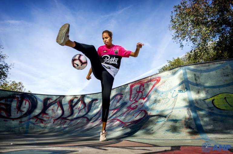As a young girl, born in the Netherlands, Rocky dreamt of becoming a professional football player and wanted to show off her skills in a sold-out stadium. Not just any stadium though, but the one she could see in the far distance, from the high rise she grew up in on the outskirts of Amsterdam. The Ajax stadium! Who would ever have thought though that she would become way bigger than that dream? She broke the glass ceiling of male-dominated (street) football, by becoming the first female Street Legend of the most famous and best Street Legends Team in the world and the first female player in Street Football Game FIFA 20. In 2017 her name appeared on the BBC 100 Women List, in the category Sexism in Sport category.