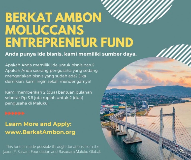 Moluccan businesspeople and budding entrepreneurs, who live in the Moluccas and Indonesia, are invited to apply. There is a limited of 100 people per workshop and an independent panel will allocate the grants. Applications for the monthly grant will be through the website: https://berkatambon.org/entrepreneur-fund. Further details for the workshops will be released in due course.