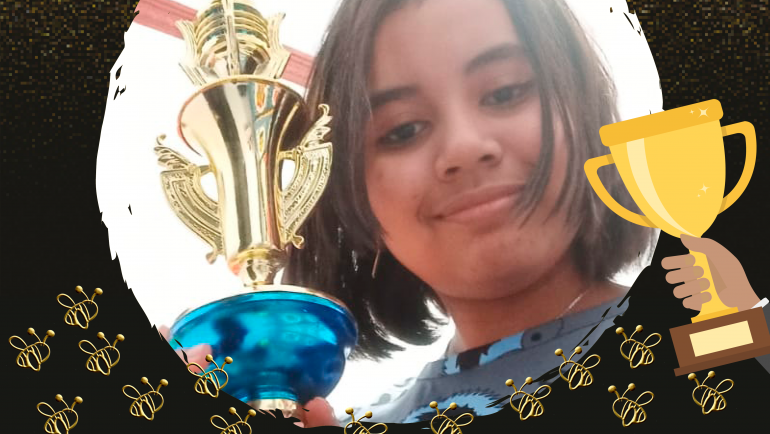 So was she nervous before the final? “While I was waiting in the breakout room, I decided to read the articles again, so that my mind would remember it all more clearly. I understood the articles and tried to focus on the difficult words, so I probably didn’t have time to get really nervous about it. Although there was one word in the Bee article Ovipositor, that my brain just kept forgetting and I was convinced that the pronouncer wanted me to spell this word. After each round, I was silently screaming out the word O-V-I-P-O-S-I-T-O-R and made myself nervous because I was anticipating for that word to come. It wasn’t even mentioned."