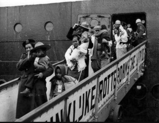The webinar started with a black and white video and photo compilation of KNIL families on one of the ships, the Groote Beer. The younger kids played games and smiled for the camera, innocent and unaware of the future ahead, whilst the older generation approached the journey with trepidation and was more guarded with their emotions. The harsh reality would set in on arrival in that cold and foreign land that had (temporarily) accepted them.