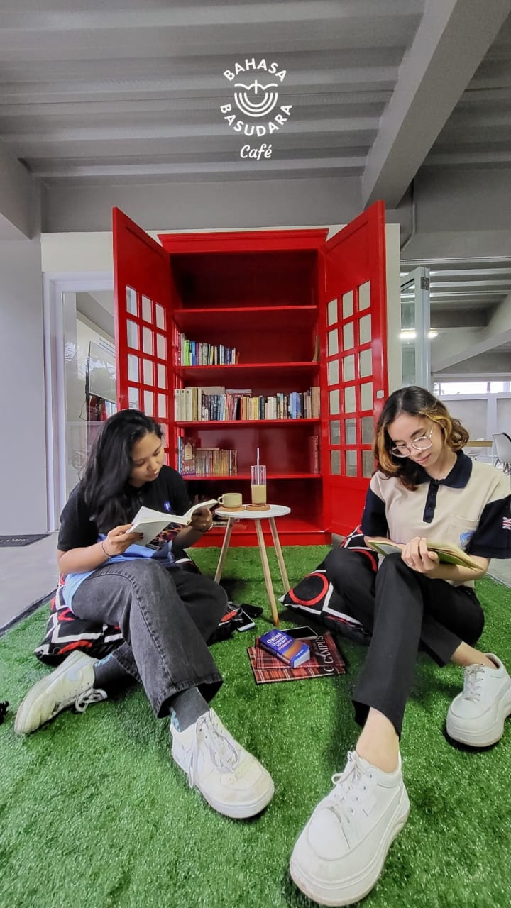 Book corner at Bahasa Basudara Cafe